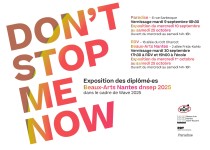 L’exposition Don’t stop me now montre une sélection d’œuvres produites au sein de l’école des Beaux-Arts et de ses ateliers. C’est un temps de visibilité du travail artistique à ce moment charnière de la fin des études et du début de vie d’artistes auteur·es, de rencontres avec tous les publics.
